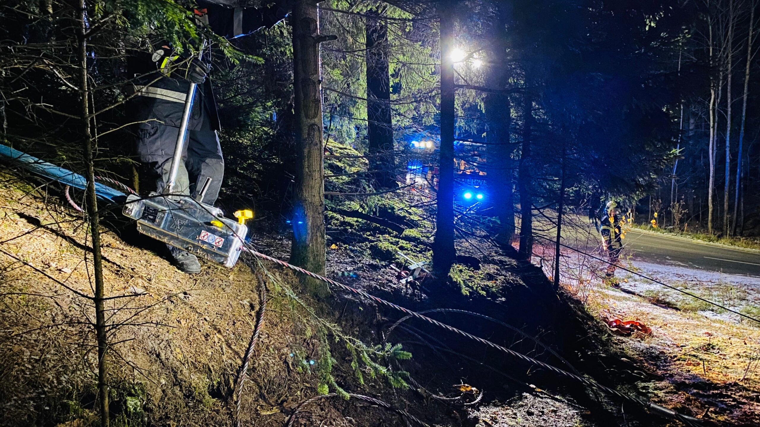 Für die Bergung kamen sowohl die Seilwinde als auch ein Greifzug zum Einsatz, um das Fahrzeug möglichst schonend herauszuziehen. Der Greifzug diente zusätzlich als Sicherungs- und Unterstützungsmaßnahme, da das Fahrzeug sonst beim Herausziehen abgerutscht wäre.